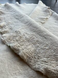 WijdeWol wades worden met de hand gevilt door Annika Boontjes. Eenvoud, natuur en aandacht omschrijven de warme wollen wades.