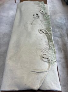 Een ‘laatste jas’ voor de laatste reis. Warm, zacht, knuffelbaar, met een sluiting en een zak om iets in mee te geven. Met aandacht en liefde gemaakt door Annika Boontjes.